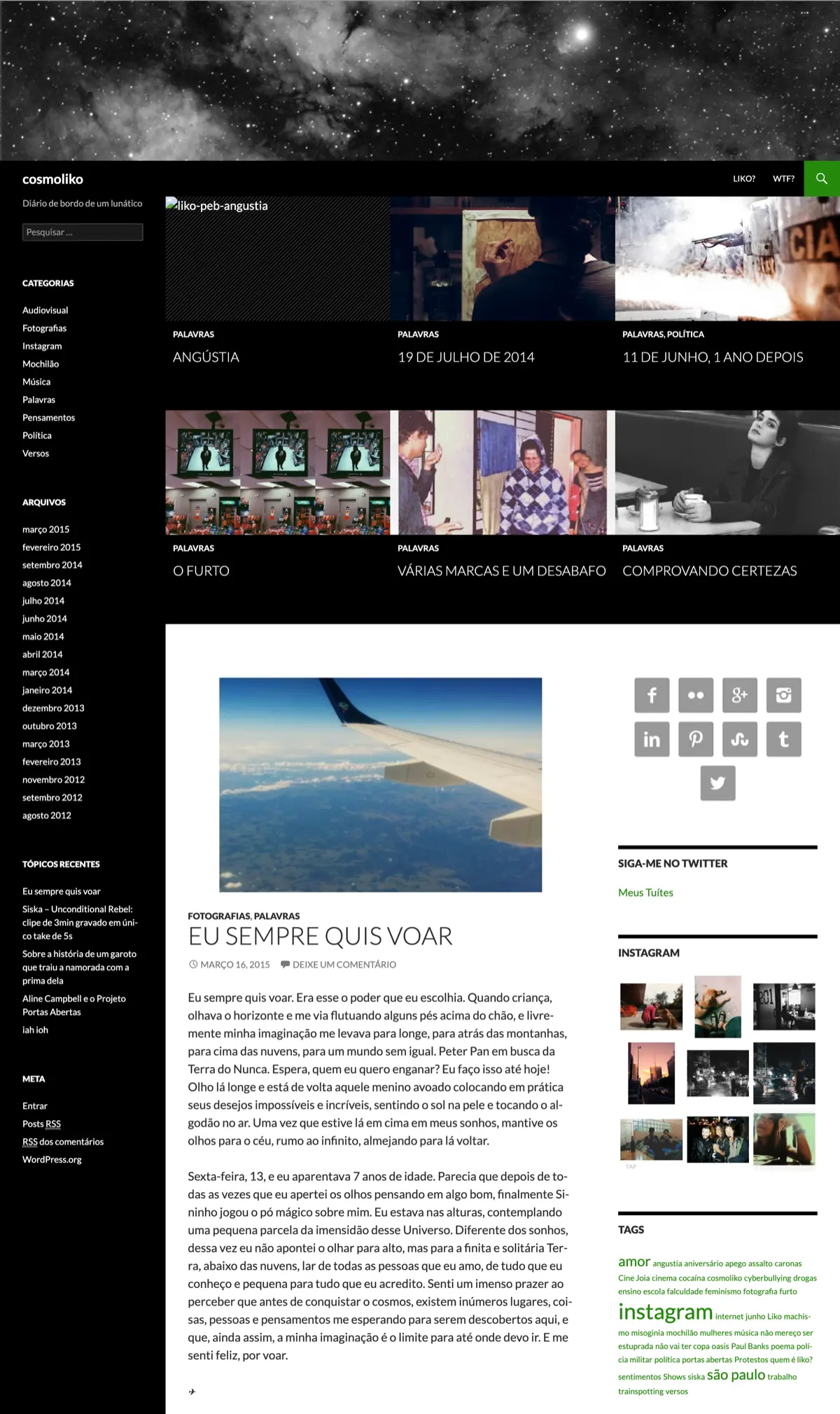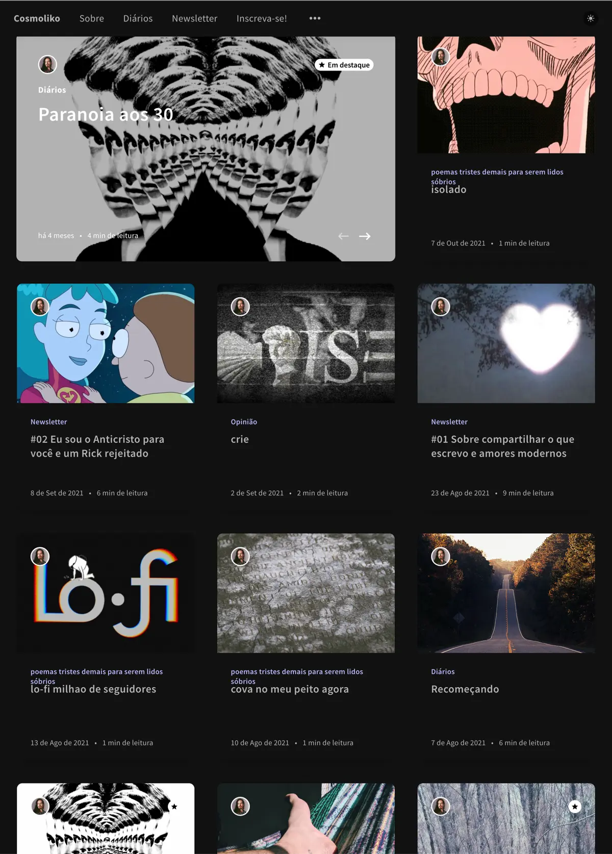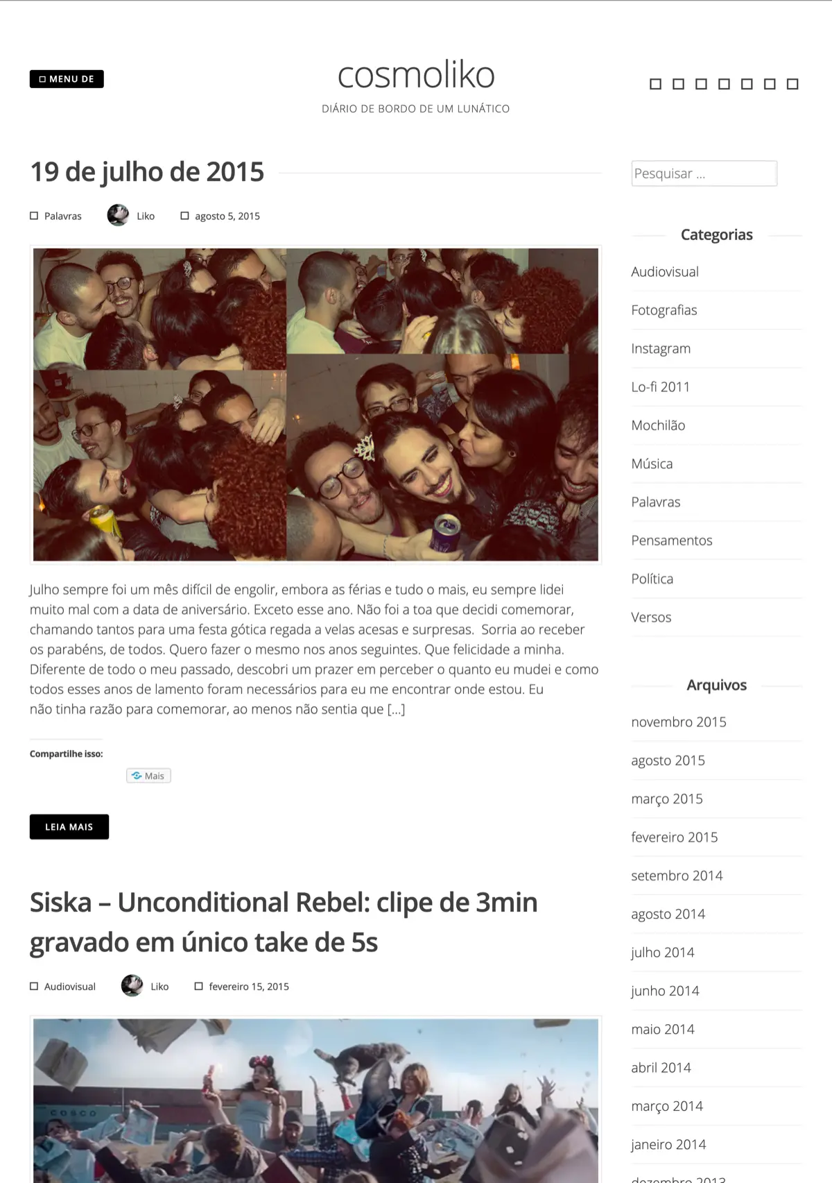 Na maior parte dos anos, o Cosmoliko era um lugar introspectivo, ainda que online e disponível para outras pessoas acessarem e lerem. Algo que comecei a mudar no passado recente.